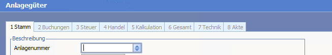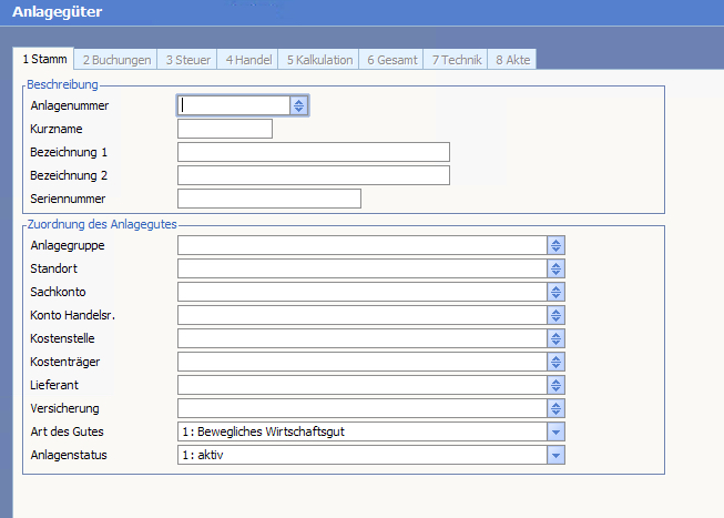 Das nachfolgende Kapitel beschreibt detailliert die Eingabemaske "Stamm" eines Wirtschaftsgutes.