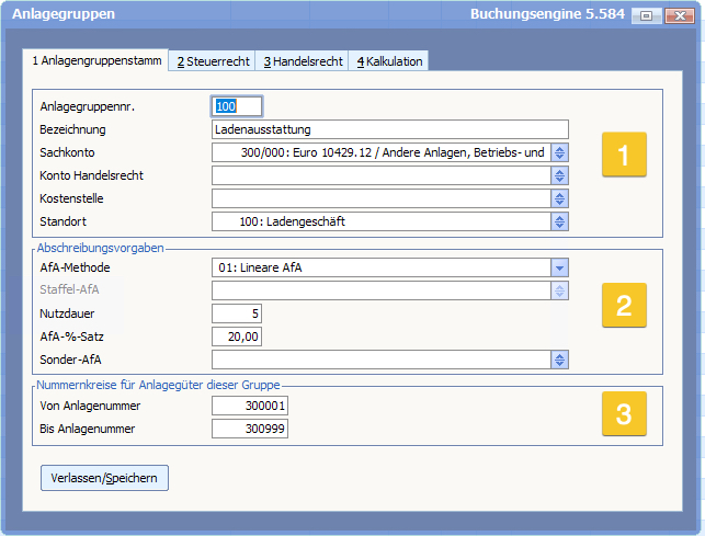 Hier erfolgt die Definition eines Nummernkreises für Anlagegüter, die dieser Gruppe zugeordnet werden.