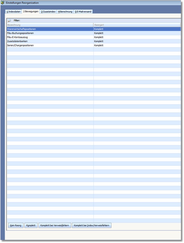 Hier können Sie die Reorganisation der Bewegungsdaten (Positionsdaten) einstellen: