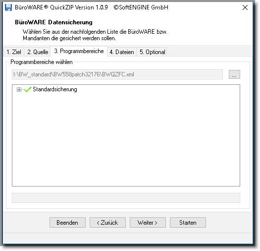 Die Standardsicherung enthält eine Filterung, welche in der Datei „BWQZFC.XML“ festgelegt ist. In dieser Datei können (entsprechende Designkenntnisse vorausgesetzt) auch weitereSicherungsprofile (analog „Standardsicherung“) angelegt werden.