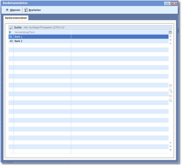 Die Auswahltabelle Bankenstammdaten wird geöffnet.
