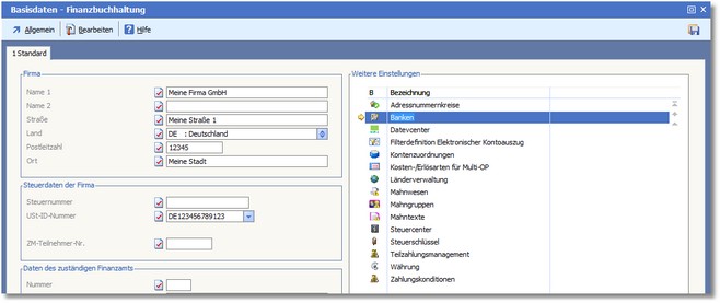 Die Basisdaten der Finanzbuchhaltung werden geöffnet.