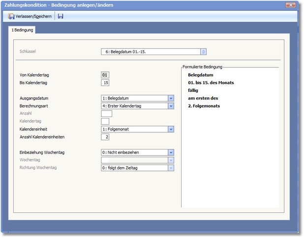 << Hier KLicken um eine Inhaltsübersicht anzuzeigen >> Navigation: Warenwirtschaft > Stammdaten > Basisdaten > Zahlungskonditionen > Über Bedingungen ermitteln |