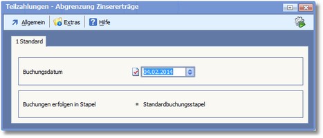 Das Programm öffnet den Dialog „Teilzahlungen - Abgrenzung Zinserträge".