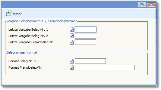 Der Bereich "Vorgabe Belegnummern 1-2, Fremdbelegnummer"
