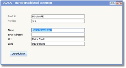 Hier wird zunächst mit Hilfe eines Zufallsgenerators ein COALA-Transportschlüssel erzeugt.