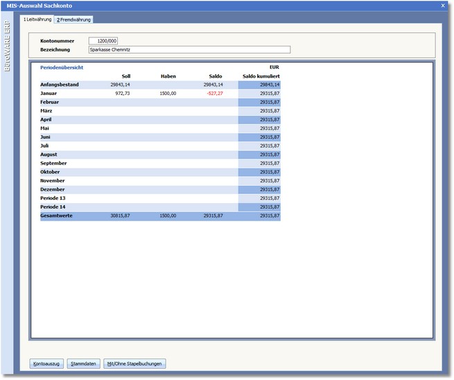 - die Soll- und Habenumsätze der einzelnen Perioden (Jahresverkehrszahlen)