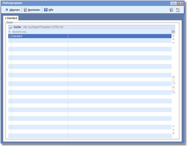 Das Programm öffnet die vorgelagerte Auswahltabelle des Mahngruppenstamms.