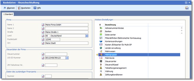 Die Basisdaten der Finanzbuchhaltung werden geöffnet.