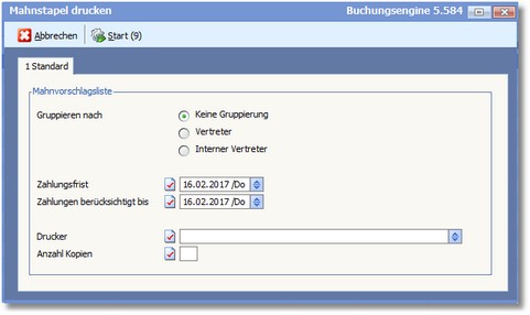 Probedruck der Mahnungen Mit dieser Funktion können Sie den Probedruck der Mahnungen durchführen.