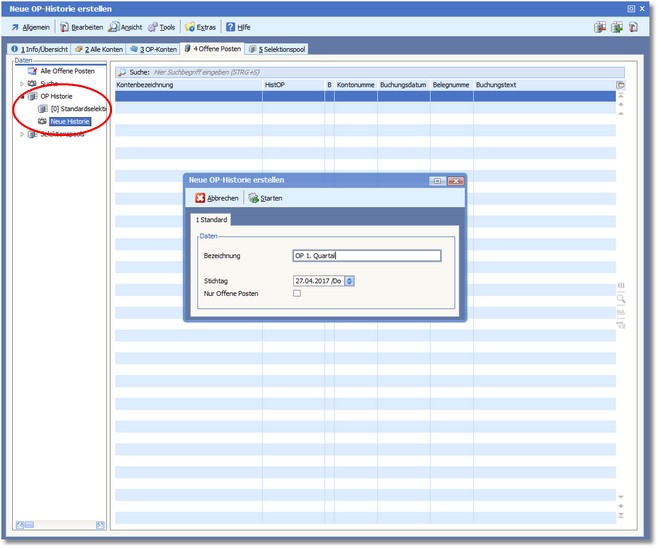 Um Kreditrahmen, Skonto oder andere Zahlungsbedingungen neu zu verhandeln sind mitunter historische Auswertungen zu Offenen Posten nützlich. In diesem Fall kann man direkt aus der OP-Verwaltung heraus einen historischen Datenbank-Snapshot erstellen.