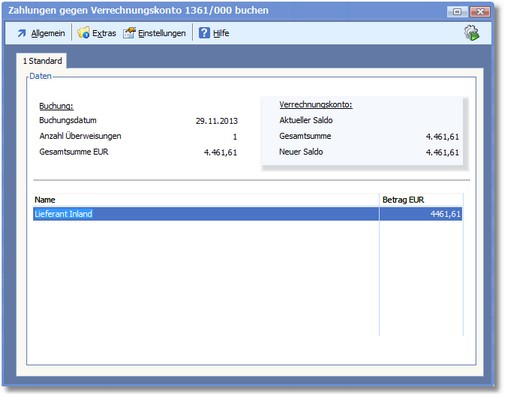 Navigation:  Finanzbuchhaltung > Laufende Vorgänge > Zahlungsverkehr > Zahlungsausgang > Die Karteikarte "An Bank übergeben/übertragen" >