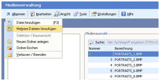 Navigation:  Warenwirtschaft > Stammdaten > Artikelstamm > Artikelstamm - Menü > Medienverwaltung >