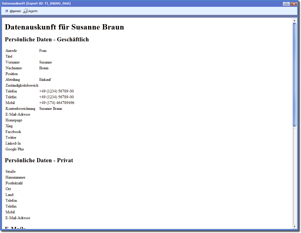 Da das Ersuchen nach Auskunft immer die Aktion eines Einzelnen darstellt, wurde von einer Möglichkeit für eine Gruppe von Adresssen/Ansprechpartnern  abgesehen.