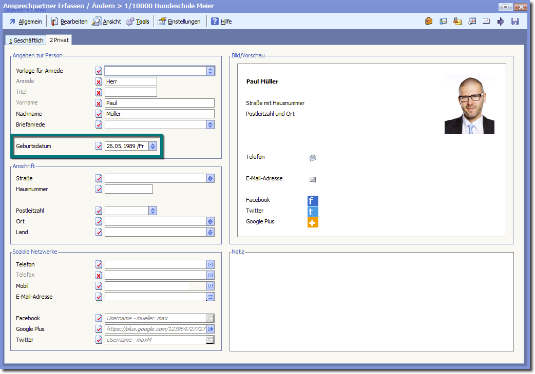 Hier zum Vergleich der Datensatz des Ansprechpartners: