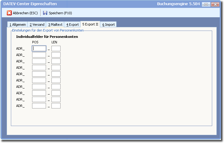 Es besteht die Möglichkeit, zusätzlich zu den Standardfeldern 10 weitere Felder der Personenkonten individuell zu übergeben.