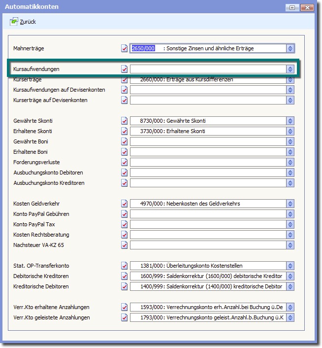 Im Beispiel ist dies das Konto "Kursaufwendungen".