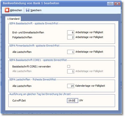 Nun werden Ihnen die Standardeinreichungsfristen für Lastschriften angezeigt.
