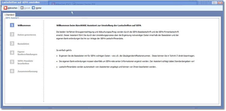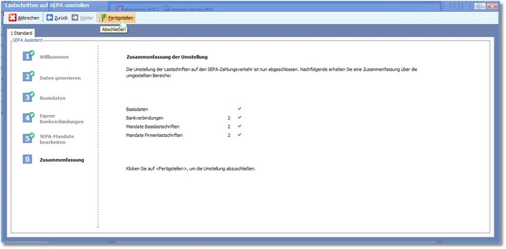 In diesem Arbeitsschritt erfolgt die Umstellung der Lastschriften auf SEPA. Folgen Sie dazu den Anweisungen des Assistenten.