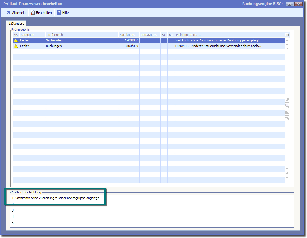 << Hier KLicken um eine Inhaltsübersicht anzuzeigen >> Navigation: Finanzbuchhaltung > Monatliche/periodische Arbeiten > Finanzbuchhaltung prüfen > Prüflauffehler und deren Bearbeitung > Fehler im Finanzbuchhaltungsprüflauf > Sachkonto ohne Zuordnung zu einer Kontengruppe angelegt |