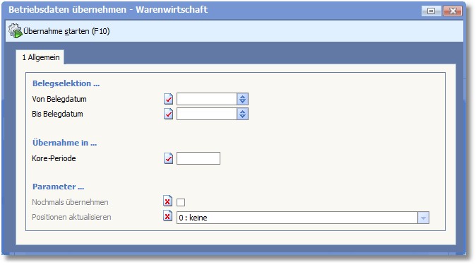 Hier grenzen Sie den Zeitraum ein, für den WA-Rechnungen und WA-Gutschriften übernommen werden. Vergleichskriterium ist das Belegdatum.