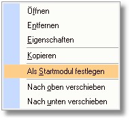 << Hier KLicken um eine Inhaltsübersicht anzuzeigen >> Navigation: Erste Schritte > Arbeiten mit BüroWARE > Der Arbeitsplatz > Arbeiten mit Verknüpfungen > Die Verknüpfung als Startmodul festlegen |