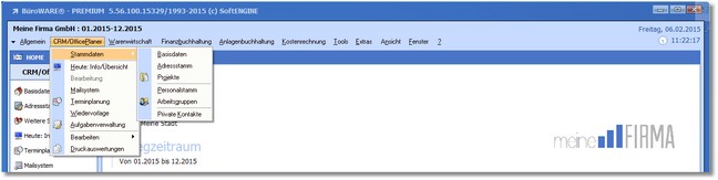 1. Zeigen Sie mit der Maus im Hauptmenü auf "CRM/OfficePlaner > Stammdaten".