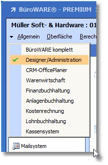 1. Rufen Sie den Designer über die Combo Box des Front Office auf.