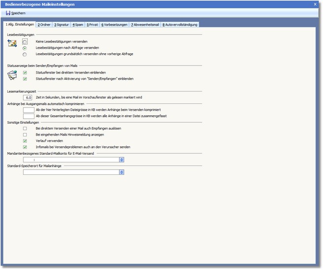 << Hier KLicken um eine Inhaltsübersicht anzuzeigen >> Navigation: CRM/OfficePlaner > Mailsystem > Mail einrichten > E-Mail-Assistent - Extras > Bedienerbezogene Einstellungen > Die Karteikarte "Allg. Einstellungen" |