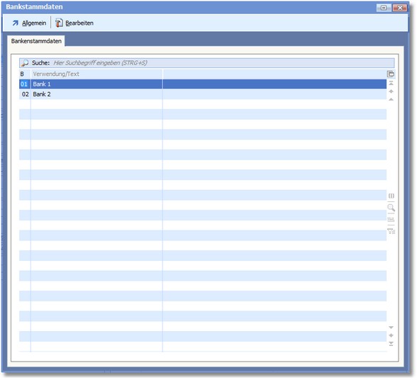 Der Dialog Bankstammdaten wird geöffnet.