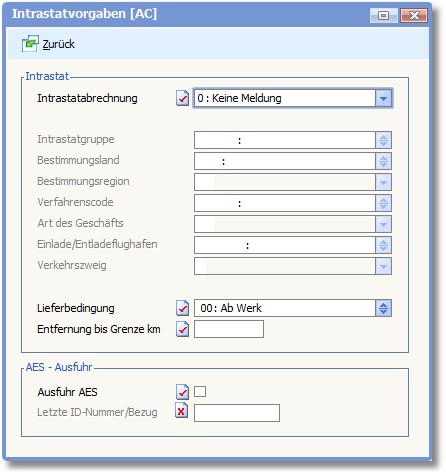Aktivieren Sie den Status dieses Feldes, wenn Belege mit der AES-Schnittstelle exportiert werden sollen.