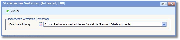 Hier legen Sie über die Schlüsselzahlen 0 bis 4 fest, wie das Programm die statistische Fracht zur Ermittlung des statistischen Wertes errechnen soll. Mit der Funktionstaste [F5] oder einem Klick auf die Pfeiltaste öffnen Sie eine Dropdownliste mit den möglichen Erfassungsarten.
