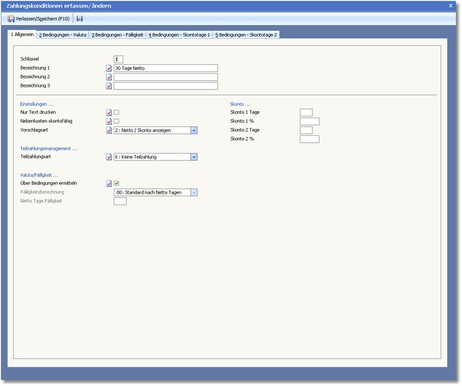 Navigation:  Warenwirtschaft > Stammdaten > Basisdaten > Zahlungskonditionen >