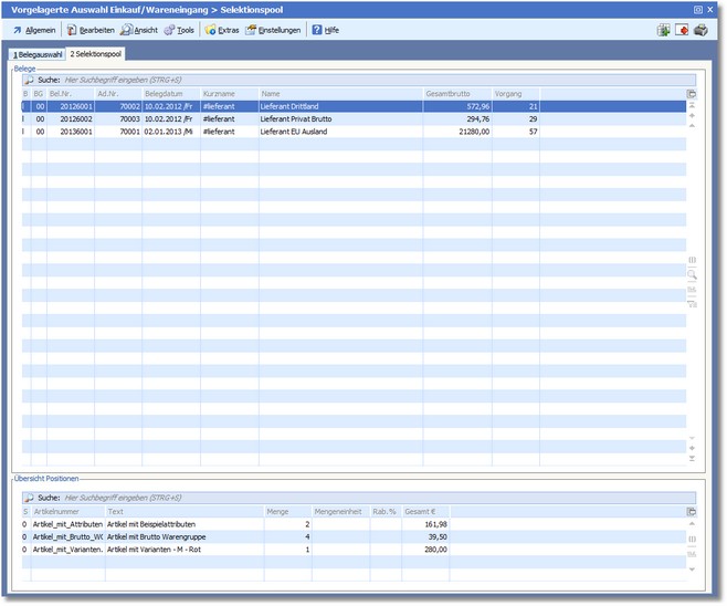 << Hier KLicken um eine Inhaltsübersicht anzuzeigen >> Navigation: Warenwirtschaft > Belegbearbeitung > Selektionspool Wareneingang/Warenausgang |