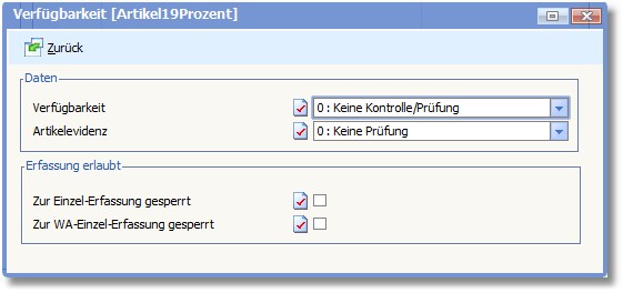 Aktivieren Sie den Status dieses Feldes, wenn der Artikel nicht einzeln (manuell) innerhalb eines WA-Beleges erfasst werden soll.
