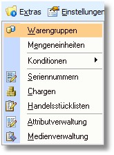 1. Klicken Sie im Artikelstamm auf "Extras > Warengruppen".