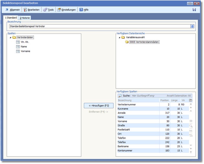 Navigation:  Warenwirtschaft > Stammdaten > Vertreter > Selektionspool Vertreterstamm >