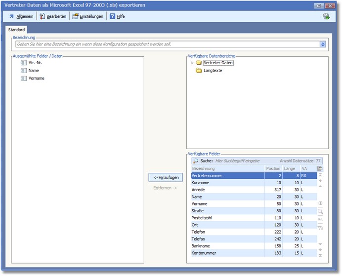 Dieses Tool steht Ihnen über den Menüeintrag "Tools > Exportieren" im Vertreter-Selektionspool zur Verfügung.