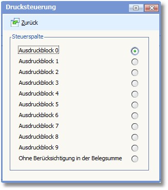 Hier können Sie durch Aktivierung der entsprechenden Option festlegen, in welchem Ausdruckblock im Belegformular der Artikel gedruckt wird. Darüber sind bspw. unterschiedliche Formatierungsmöglichkeiten im Ausdruck möglich.