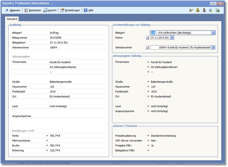 3. Überprüfen Sie die hier angezeigten Einstellungen und nehmen Sie bei Bedarf noch Änderungen vor. 4. Drücken Sie die Funktionstaste [F9] bzw. klicken Sie auf den Quicktoolbutton "Umwandlung starten". 5. Markieren Sie die gewünschten Positionen mit der [PLUS]-Taste oder direkt mit einem Doppelklick. 6. Starten Sie die Umwandlung der markierten Positionen mit [F9] und beantworten Sie die nachfolgende Abfrage mit <Ja>.