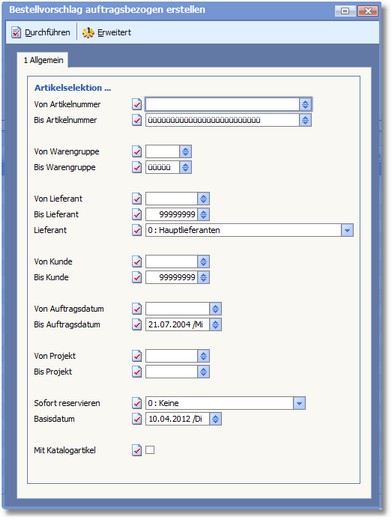 Eingrenzung des Bestellvorschlags anhand des Hauptlieferanten des Artikels.