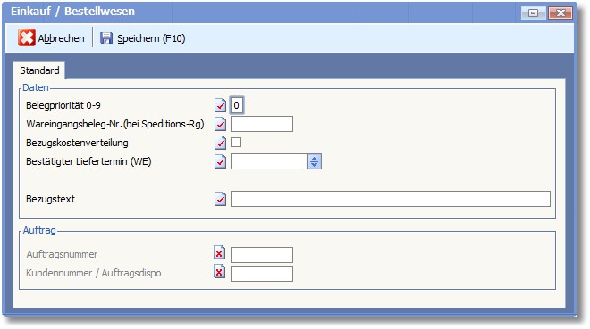 Sie können für Belege des Kunden (insbesondere Aufträge) eine Priorität vorgeben, die dann in jeden neu zu erfassenden Beleg übernommen wird. Höchste Priorität hat die Schlüsselzahl 0, niedrigste Priorität die Schlüsselzahl 9.