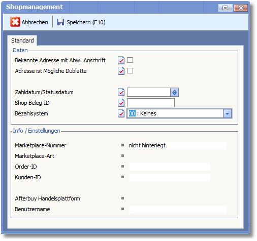 Die Felder dieser Maske enthalten nur dann Werte, wenn der Beleg in einem Webshop erzeugt und in das Programm importiert wurde: