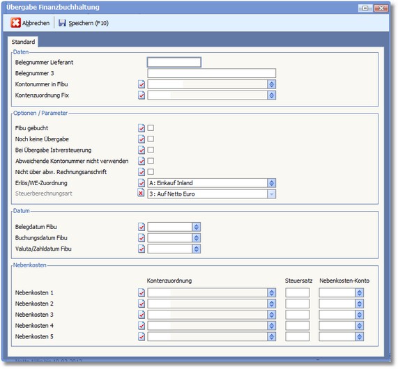 Aktivieren Sie diese Option, wenn noch keine Belegübergabe an die Finanzbuchhaltung erfolgen soll.