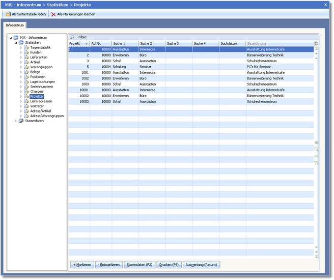 << Hier KLicken um eine Inhaltsübersicht anzuzeigen >> Navigation: Warenwirtschaft > Auswertungen > Informationszentrum > MIS-Infozentrum > Projekte |