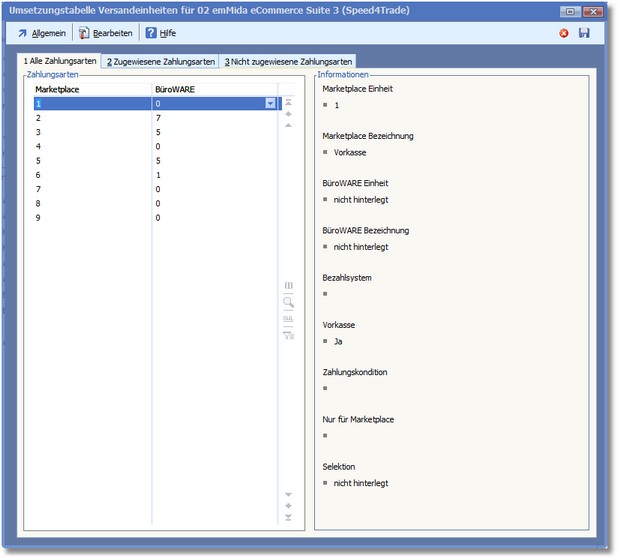 << Hier KLicken um eine Inhaltsübersicht anzuzeigen >> Navigation: Warenwirtschaft > Extras > Shopmanager > Marketplaces > emMida > Marketplace verwalten > Umsetzungstabellen > Versandeinheiten |