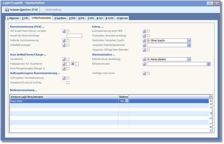 Über die Bedienerzuweisung wird die Verbindung zwischen dem Windows-User und dem Programmbediener im MDE-Modus hergestellt.