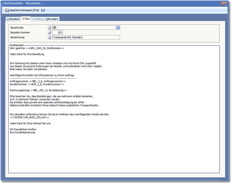Für die Neuanlage eines entsprechenden Textbausteins beachten Sie bitte das Kapitel